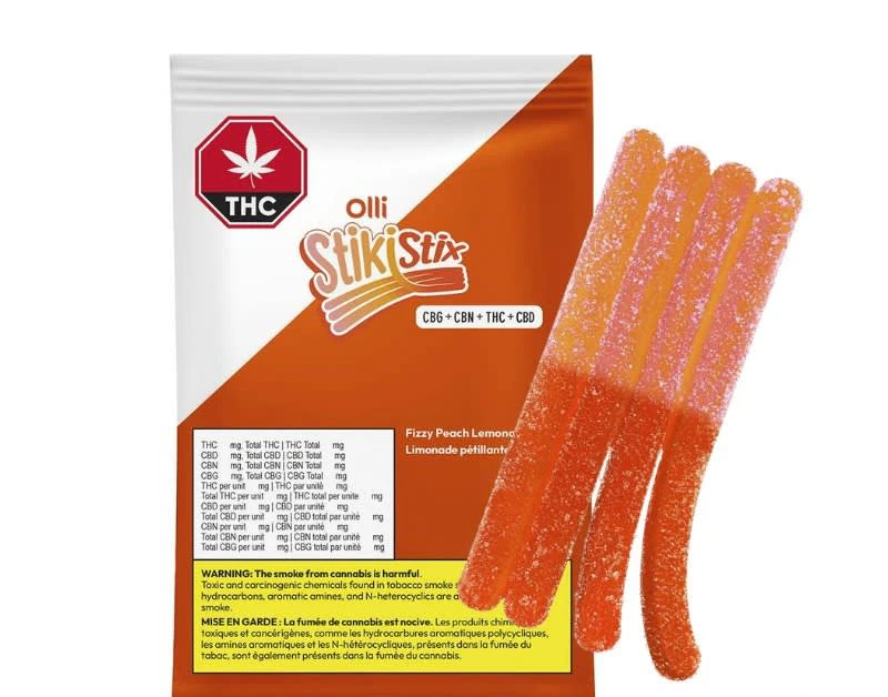 Packed with 10 mg of CBG, CBN, CBD and THC, and with a juicy fusion of Peach Lemonade, our Olli Stikistix feature a chewy texture and a unique shape allowing you to split them into four strips.